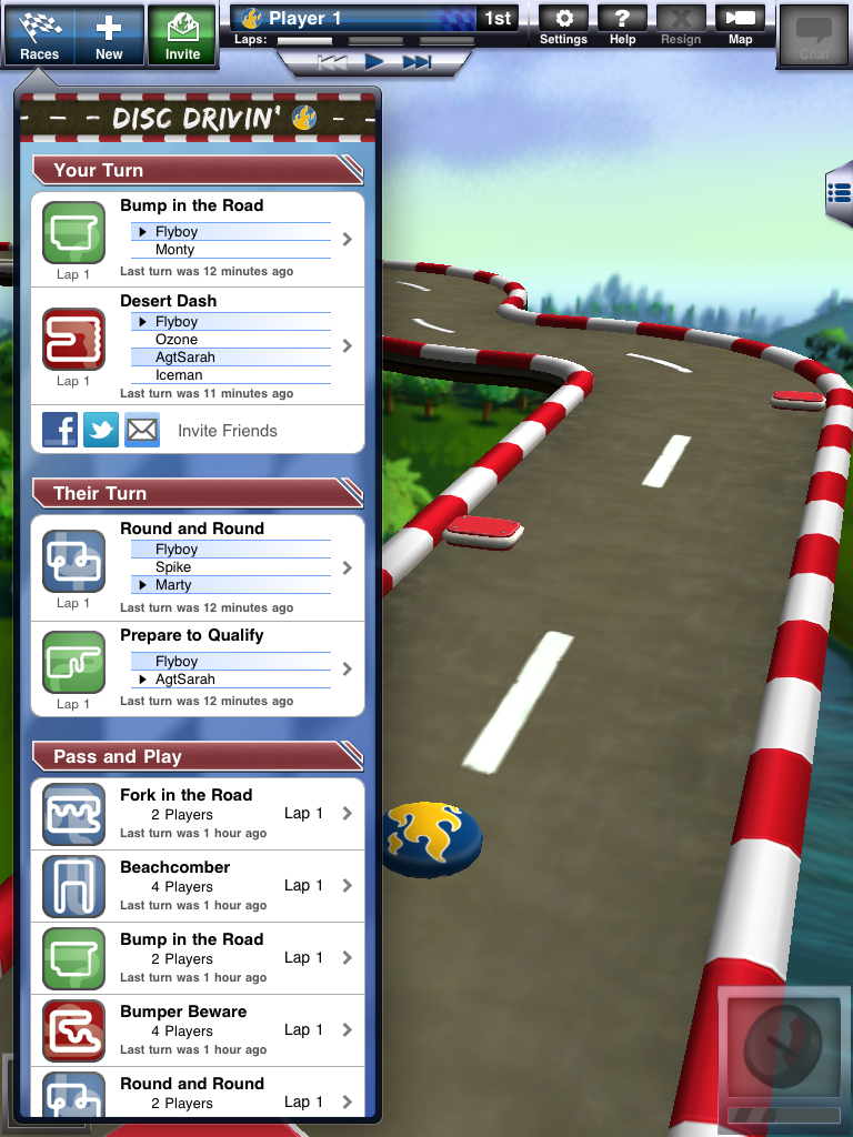 Disc Drivin’ is fun, social, turn-based racing! Race against your friends at your own pace with the swipe of your finger. Use awesome powers and avoid hazards on beautiful tracks with full 3D physics!